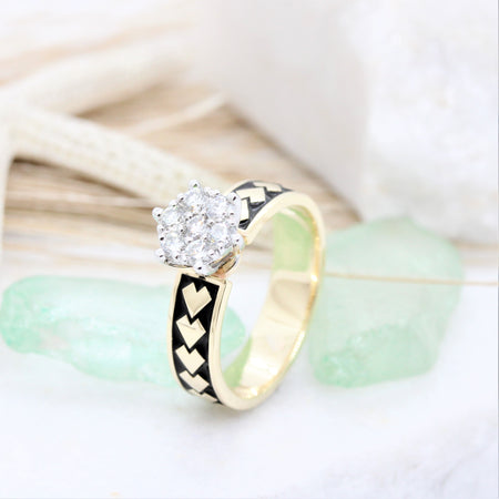 NC042L - Ladies Diamond Spear and Flower Bar Ring