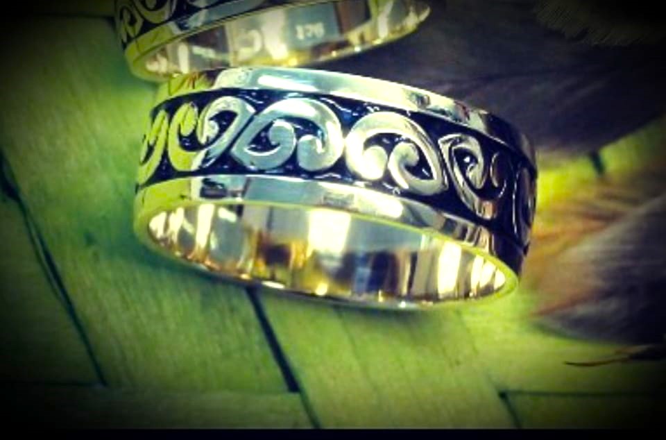 This design comes the land of the Long White Cloud. Clean Koru shaped lines make for a stunning design going all the way around this wedding ring, with no start and no finish. Symbolising love that has no beginning or end. The shape of the koru also represents the male and female joined together.  The Mens ring is 8mm wide.